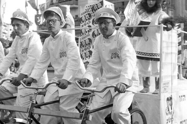 7. מצעד העדלאידע ברחובות ירושלים: שער קק"ל דרכו עוברת עגלת פרי ההדר.