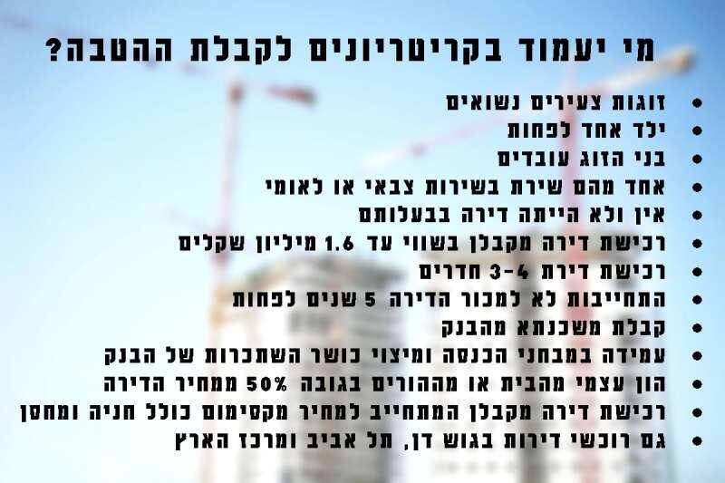 שווי הדירה לזכאות: עד 1.6 מיליון שקל