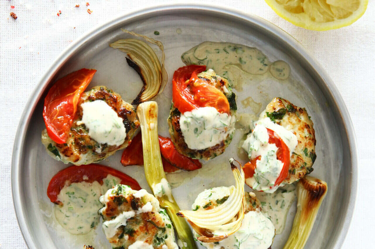 מוסיפים למחבת את הירקות החרוכים, מתקנים תיבול, יוצקים מהטחינה ומגישים.