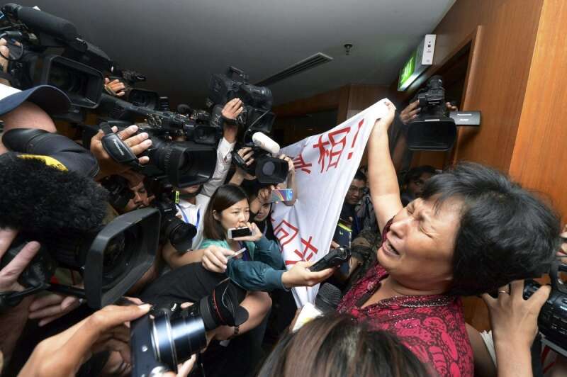 קבוצת קרובי משפחה של הנוסעים הנעדרים, ממוצא סיני, השתתפו במסיבת העיתונאים ומחו על התנהלותה של מלזיה בכל הנוגע לחיפוש המטוס. המשפחות הניפו שלטי מחאה, והמשטרה המלזית התערבה כאשר הטונים עלו וקבוצת עיתונאים החלה להצטופף סביב הקבוצה.