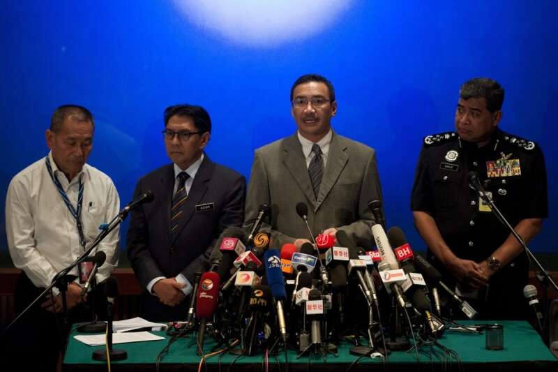 התנהלות קלוקלת? שר הביטחון המלזי (שני מימין) במסיבת העיתונאים היום. צילום: אי.אף.פי