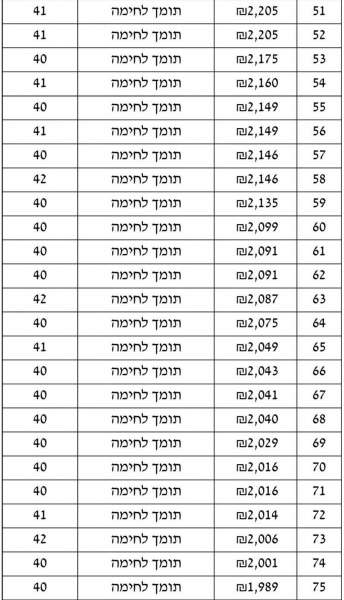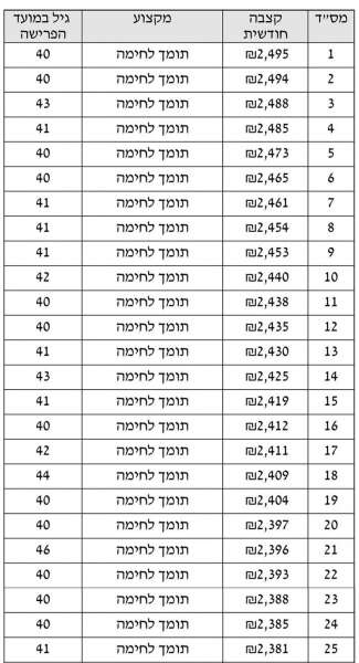 100 קצבאות הפנסיה הנמוכות בשנת 2013