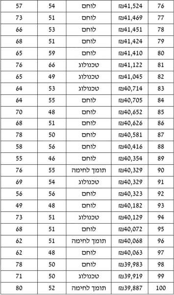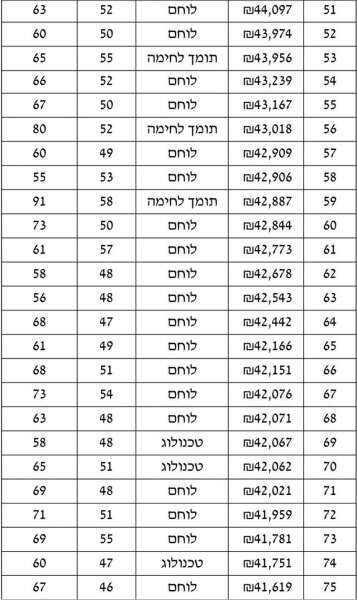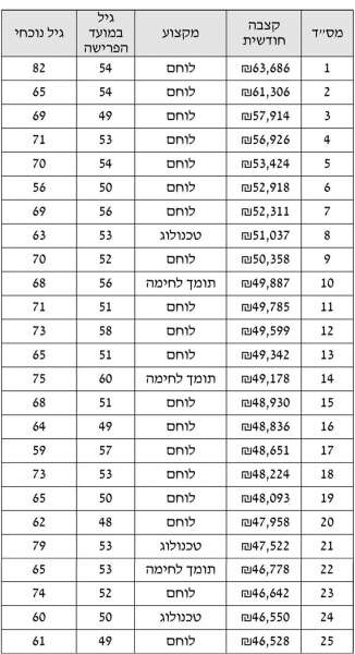 100 קצבאות הפנסיה הגבוהות בשנת 2013
