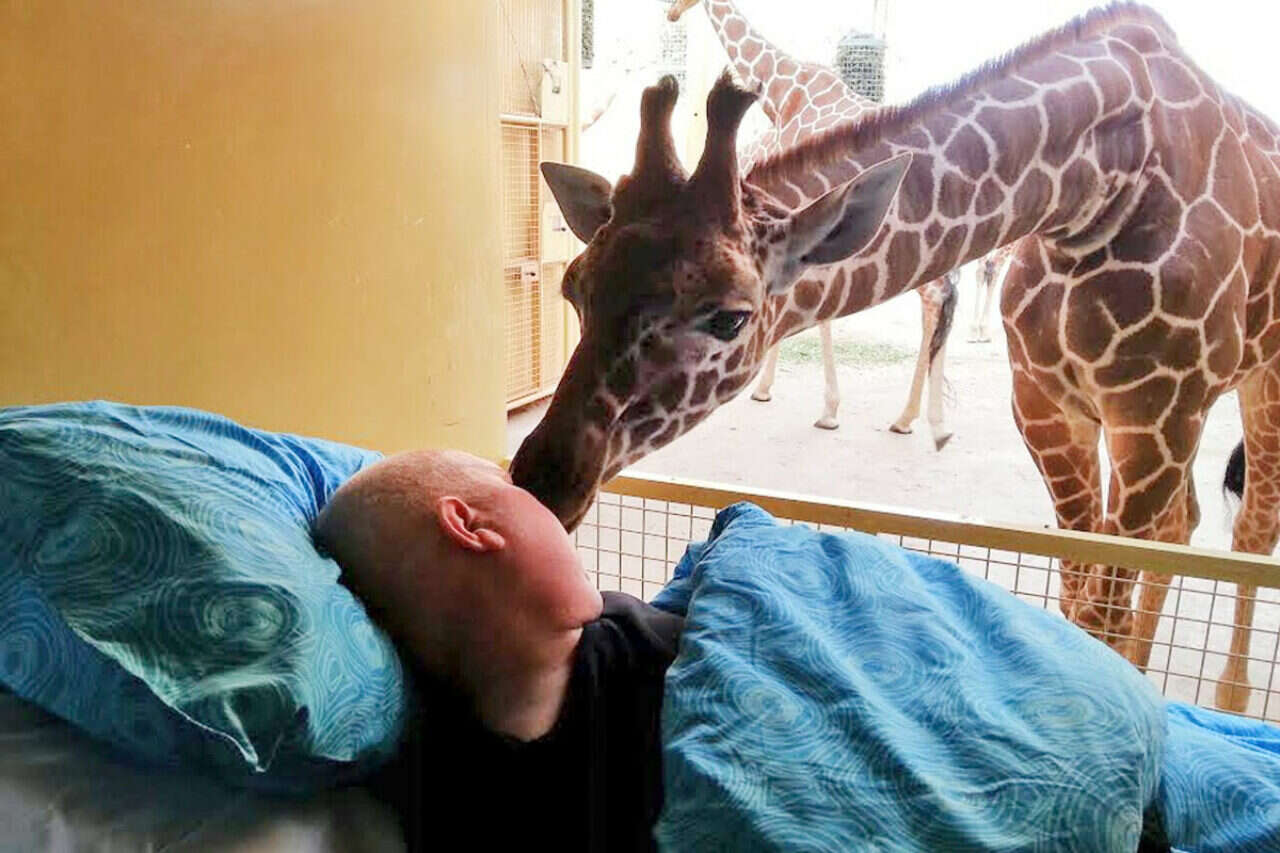 ב־25 שנות עבודתו בגן החיות של רוטרדם בהולנד, יצר מריו (54), עובד תחזוקה, קשר אמיץ עם הג'ירפות. את רוב חייו הבוגרים העביר בניקוי הכלובים שלהן, ולכן לא פלא שגם על ערש דווי הוא מבקש לומר להן להתראות בפעם האחרונה: בסוף השבוע ביקש מריו, החולה בסרטן, להציב את מיטת בית החולים שלו בכלוב של החיות ארוכות הצוואר. בתוך דקות הן החלו להתחכך בו ולנשקו - וכמובן לרגש את כל מי שהביט במחזה קורע הלב.
