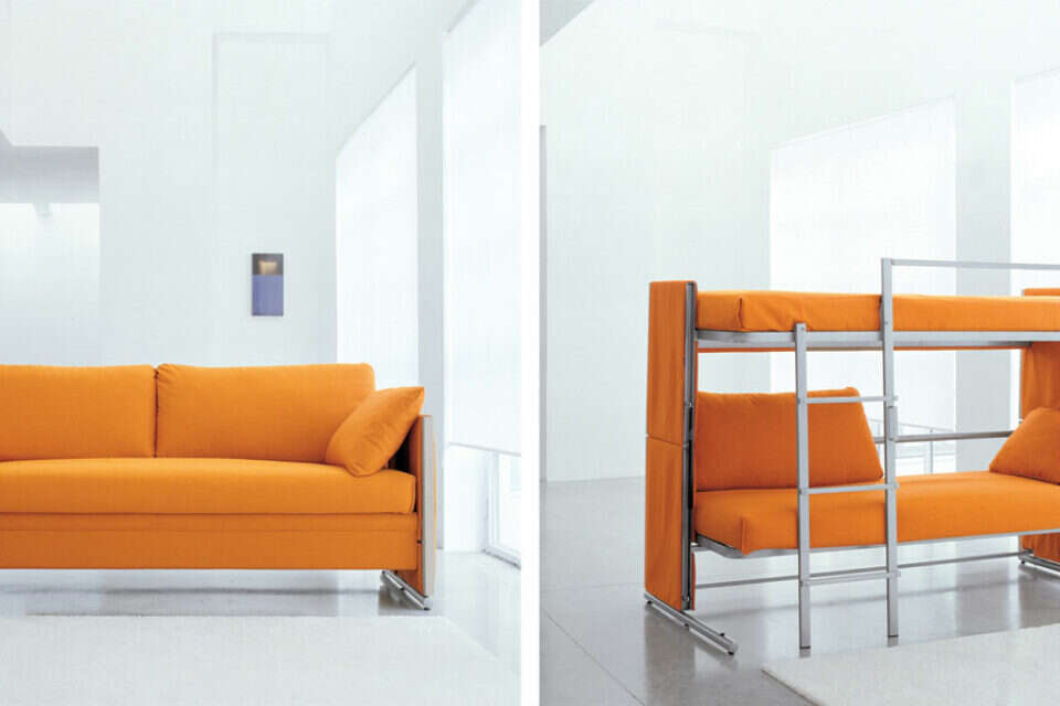 מערכת קיר עם ארון הנפתחת למיטה זוגית. צילומים: Enrico Colzani