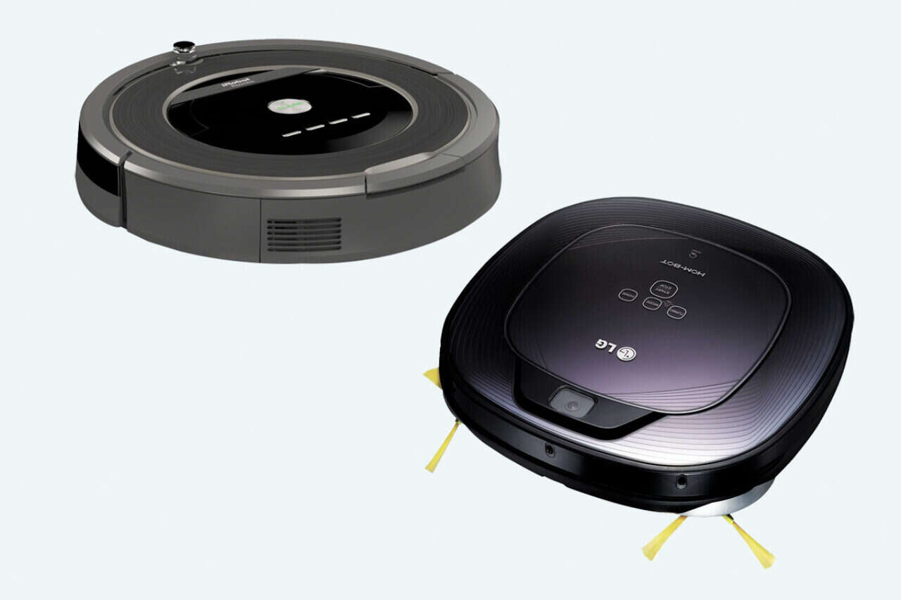 מימין לשמאל: LG הומ־בוט ואיירובוט רומבה 880 // מימין לשמאל: LG הומ־בוט ואיירובוט רומבה 880