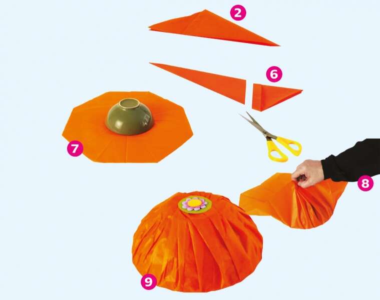 8. קפלו בהתאם לקפלים שנוצרו, מסביב לכל הקערה, והדקו.