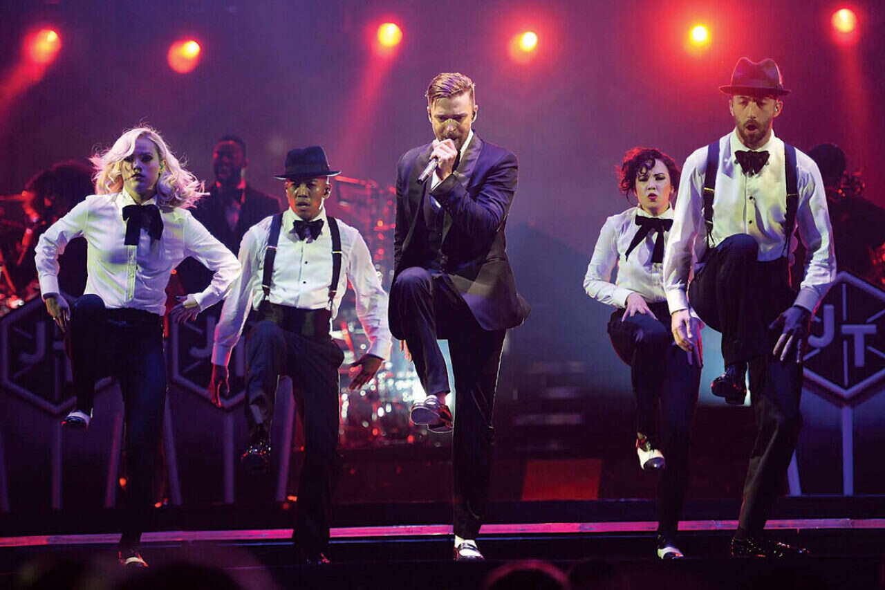 יהיה מוגזם להשוות את טימברלייק למייקל ג'קסון, אבל אין ספק שמקורות ההשראה של יוצא להקת אן סינק מגיעים גם משם. מלבד התנועות המדויקות, במהלך ההופעה מבצע טימברלייק מחווה למלך הפופ המנוח ומבצע את השיר "Human Nature" שמתקבל בהתלהבות. בהמשך הוא גם מבצע קאברים מרעננים לשירים "Jungle Boogie" (ׁׂבמקור של Kool & The Gang) ו"Heartbreak Hotel" (במקור של אלביס פרסלי).