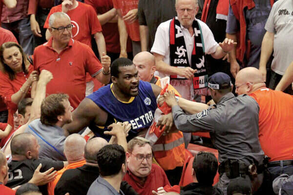 המהומה התרחשה אמש בסיום הדרבי התל־אביבי. הכל החל מייד עם הבאזר כאשר שחקני מכבי ירדו לכיוון חדרי ההלבשה, ספגו קללות קשות ונאצות מאוהדי הפועל. לטענת הצהובים, היו גם השלכת חפצים ויריקות מהיציע לעבר השחקנים. בעקבות כך החל הסנטר היווני של מכבי להשתולל, עלה ליציע, ניסה לתקוף את אוהדי הפועל כשהוא רומס בדרך כל מה שעומד בדרכו.