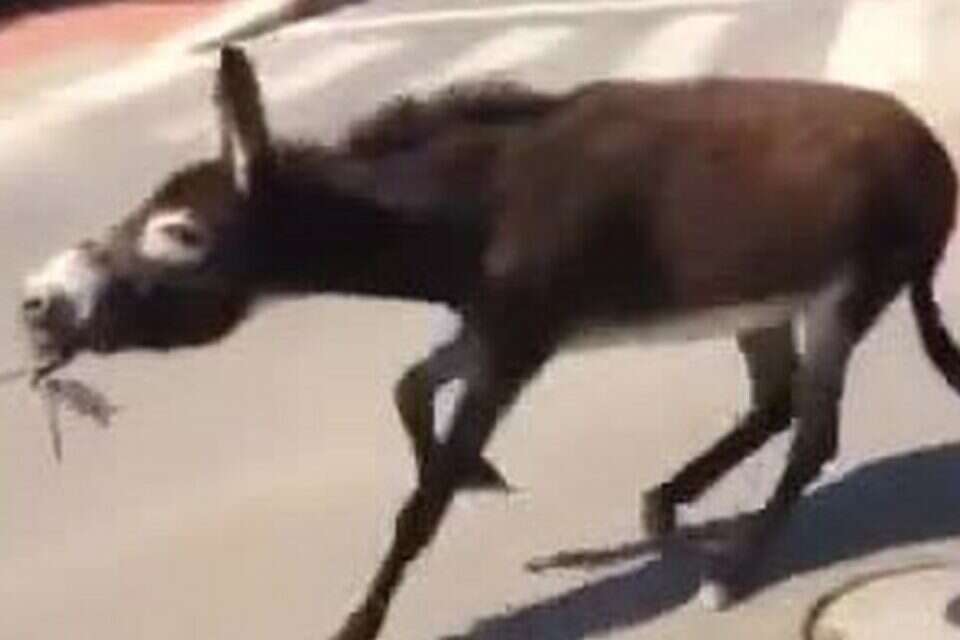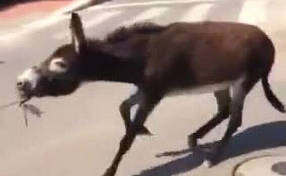 תושב הוד השרון (43) נעצר לאחר שצולם כשהוא גורר חמור על הכביש ומתבדח על זה