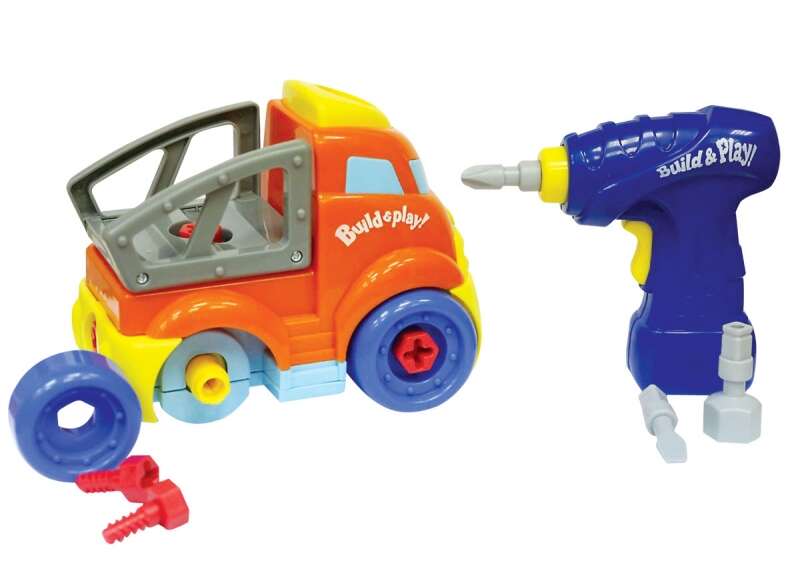 ערכה עם מכונית הניתנת לפירוק ולהרכבה באמצעות המקדחה המצורפת. הצעצוע מיועד לגילי +3. הילדים ניסו והתלהבו לפרק ולהרכיב חלקי חילוף
