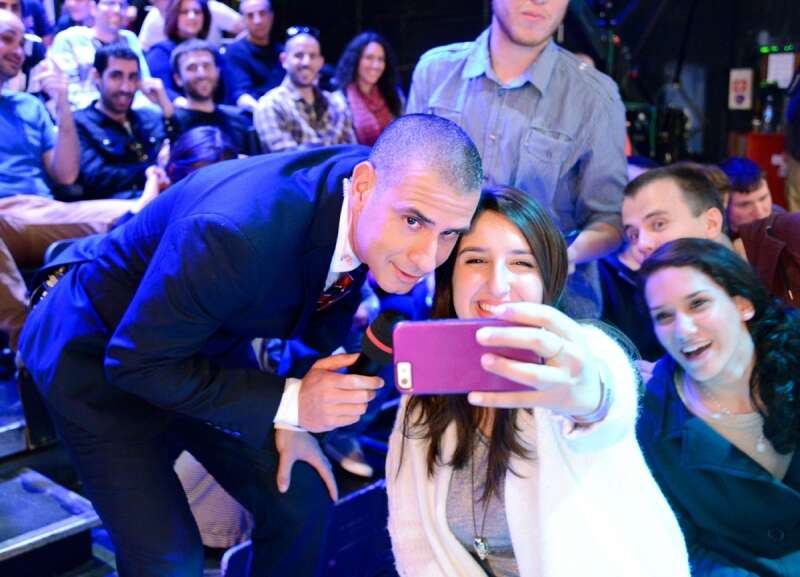 "אם לא מצחיק - לא צוחקים", מסביר קיציס לצופים שהגיעו לאולפן. צילום: מאיה באומל-ברגר