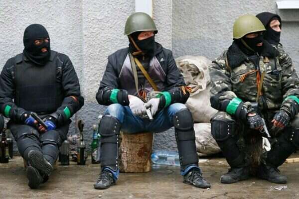 כמו בחצי האי קרים, גם במהומות במזרח אוקראינה נצפו פעילים עם נשק רוסי מתוחכם ומדים ללא תגים. נוכחות זאת הוגדרה על ידי מזכ"ל נאט"ו כ"חמורה". בנאט"ו מעריכים כי כוחות רוסיים היו מעורבים ישירות בהשתלטות על בנייני הממשל המקומיים. גם שגרירת ארה"ב באו"ם סמנתה פאוור טענה כי למרד במזרח אוקראינה "יש את כל הסימנים של מה שהתרחש בקרים".