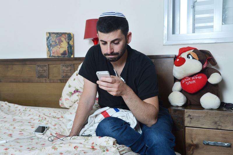 אני אומרת לו שמתחילת השיחה הוא לא הרים את ראשו מהסלולרי אפילו לרגע. הוא לוקח הפסקה נדירה, האצבעות שלו סוף סוף נחות.