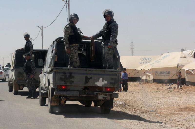 כוחות ביטחון ירדניים בכניסה למחנה הפליטים זעתרי. האינטרס הבטחוני קודם לכל
