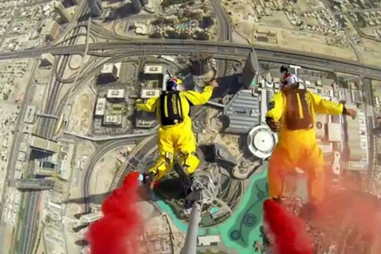 קטע וידאו מדהים מתאר את הקפיצה החופשית (בייס ג'אמפ) של שני צעירים, חמושים במצנח, מהבניין הגבוה ביותר בעולם - בורג' חליפה בדובאי.