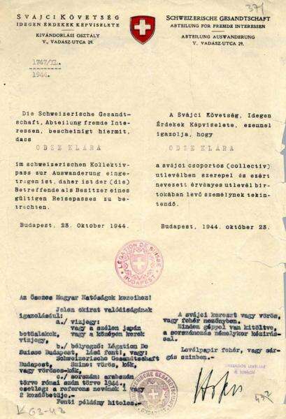 באוקטובר 1944 מודח שליט הונגריה, ומפלגת "צלב החץ" הפרו־נאצית תופסת את השלטון. גטו מוקם בבודפשט, וכל היהודים בני 16 עד 40 - למעט נתינים זרים - נדרשים להתייצב במחנות עבודה. הרדיו הממלכתי של הונגריה מודיע שלוש פעמים ביום כי המחזיקים תעודת חסות שוויצרית משוחררים מגיוס ויכולים לנוע באופן חופשי במשך כל שעות היום (על היהודים נאסר לצאת מבתיהם אלא לשעתיים).