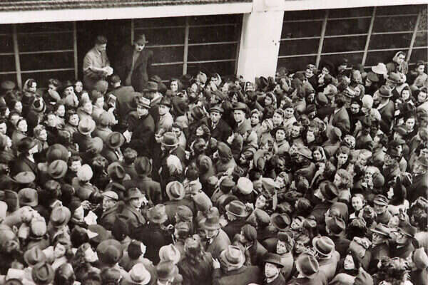 המוני יהודים בכניסה לבית הזכוכית, יולי 1944