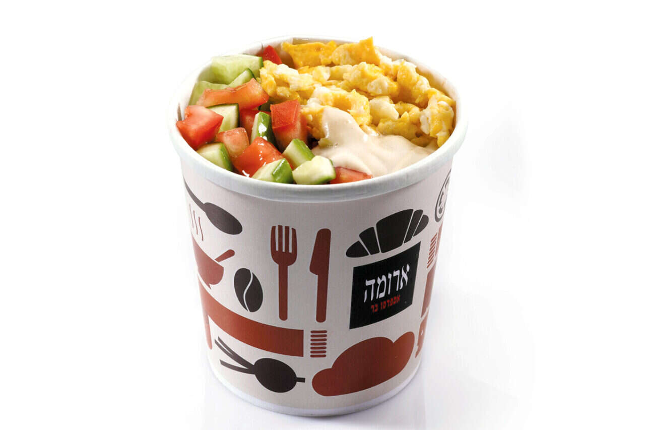 ארומה ישראל השיקה לאחרונה את "בוקר בקטנה", ארוחת בוקר המוגשת בגביע. הארוחה מכילה: מקושקשת מביצה אחת, סלט ישראלי קצוץ וטחינה. את הארוחה מציעה ארומה ישראל במסגרת שיתוף פעולה עם מכון וינגייט, לקידום אורח חיים בריא ופעיל בישראל. המנה עצמה היא פתרון טוב למי שרוצה משהו קטן על הדרך, אבל בישיבה היינו מעדיפים ארוחת בוקר רגילה. קצת קשה לערבב את המנה, הביצה המקושקשת נגמרת מהר ונשארים רק עם הסלט ומעט טחינה. מחיר: 19 שקלים