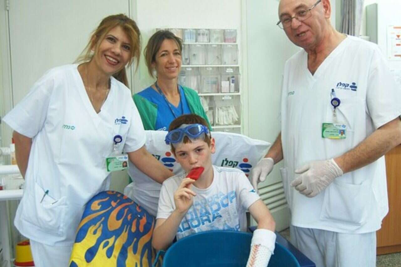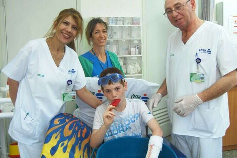 אביב לוי (10) שבר את יד שמאל ונחבש בתחילה בגבס רגיל. "הוסבר לי שלא אוכל להתקלח ולהיכנס איתו למים. 'ממש מבאס', חשבתי לעצמי", הוא מספר. כעבור כמה ימים הודיעו לאביו, אופיר, דובר ביה"ח קפלן, כי הגיע הגבס החדש, ואביב נקרא לשדרוג. "היום כבר התקלחתי איתו, וגם אוכל להמשיך ללכת לים", סיפר אביב.