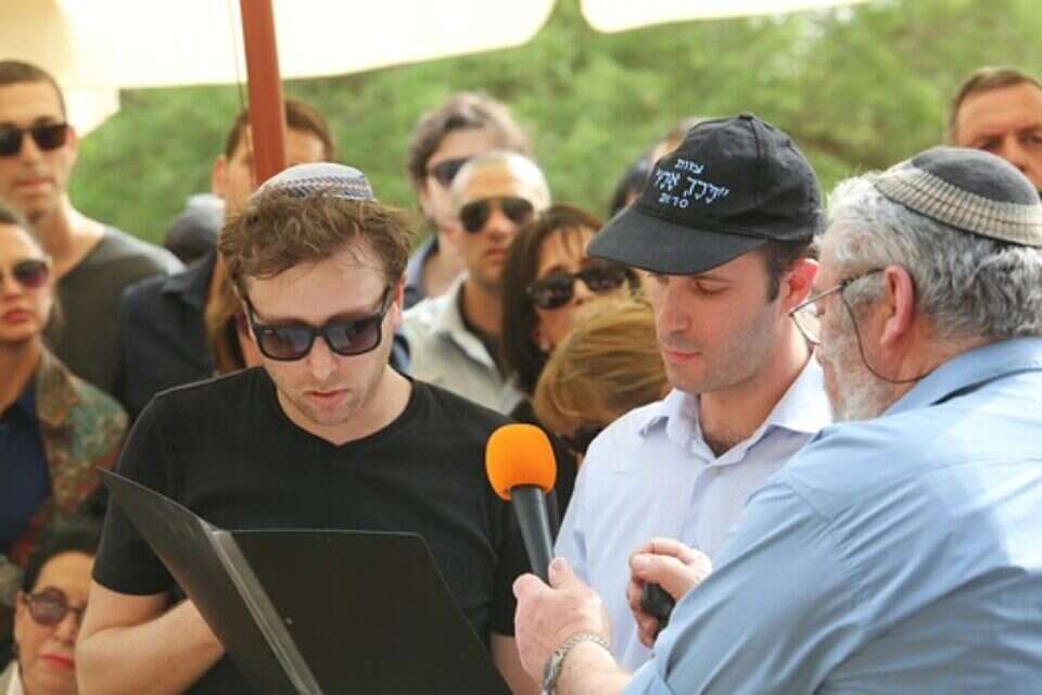 ליאור דיין מציג את בנו מול ארון הסב, אסי דיין ז"ל. צילום: קוקו