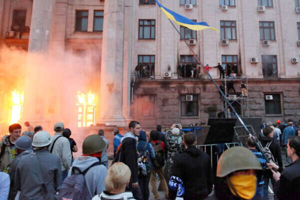 אלא שהאירועים הידרדרו במהרה. על פי דובר משטרת אודסה, לתוך בניין האיגוד הושלכו בקבוקי תבערה וגרמו לשריפה. הפרו־רוסים ניסו להיחלץ, אך לשווא: 30 איש מתו משאיפת עשן, שמונה קפצו מהחלונות ונהרגו. הרב אברהם וולף, שליח חב"ד והרב של אודסה, אמר ל"ישראל היום": "עד עכשיו אודסה היתה מחוץ למהומות. החל משישי העיר הפכה לעיר רפאים".