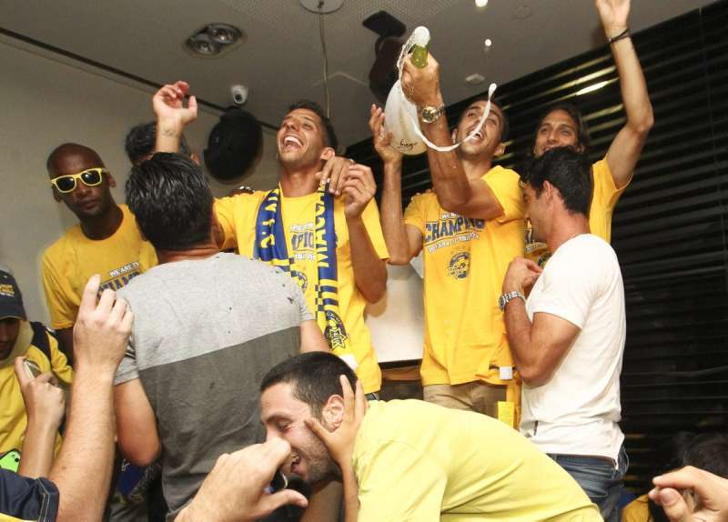 שחקני מכבי ת"א חוגגים עם האוהדים // צילום: עמי שומן