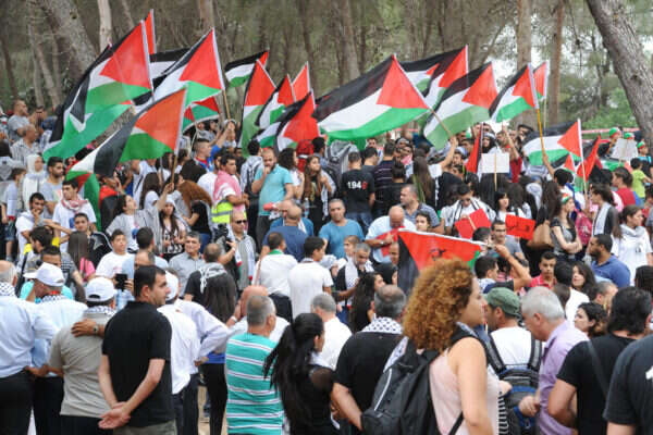 8,000 ערבים־ישראלים, נושאי דגלי פלשתין, הפגינו על חורבות כפר לוביה שנחרב במלחמת העצמאות