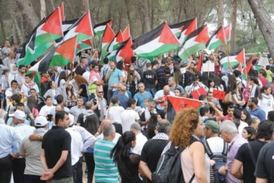 Some 8,000 Israeli Arabs waved Palestinian flags in the name of Lubya, an Arab town that was destroyed during the War of Independence.