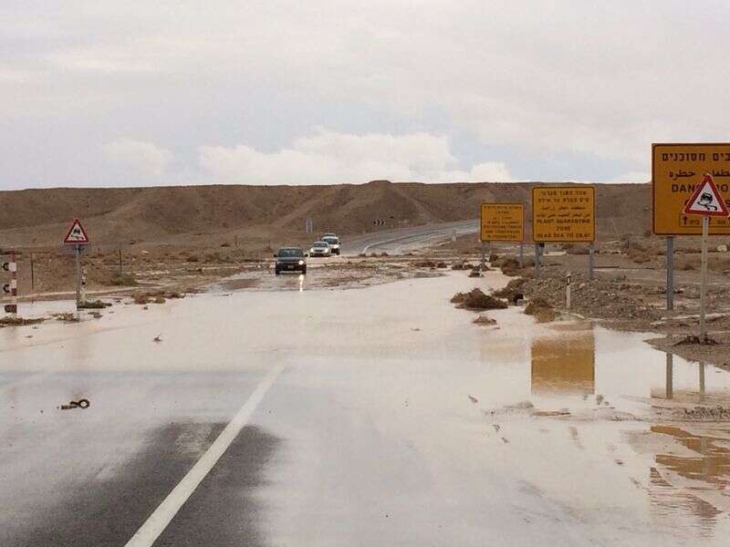 הגשם בנגב גרם לשיטפונות בכביש הערבה. המשטרה הודיעה על חסימת תנועת הרכבים בגשר צאלים. אתמול בכביש 90 ליד היישוב פארן, נלכד נהג ג'יפ על גג רכבו בשל השיטפונות. צוות יחידת החילוץ ערבה שהגיע למקום הבין כי מדובר בסכנת חיים ברורה ומוחשית ולאזור הוזנק מסוק של חיל אוויר, שפינה את הנהג לבית החולים יוספטל.