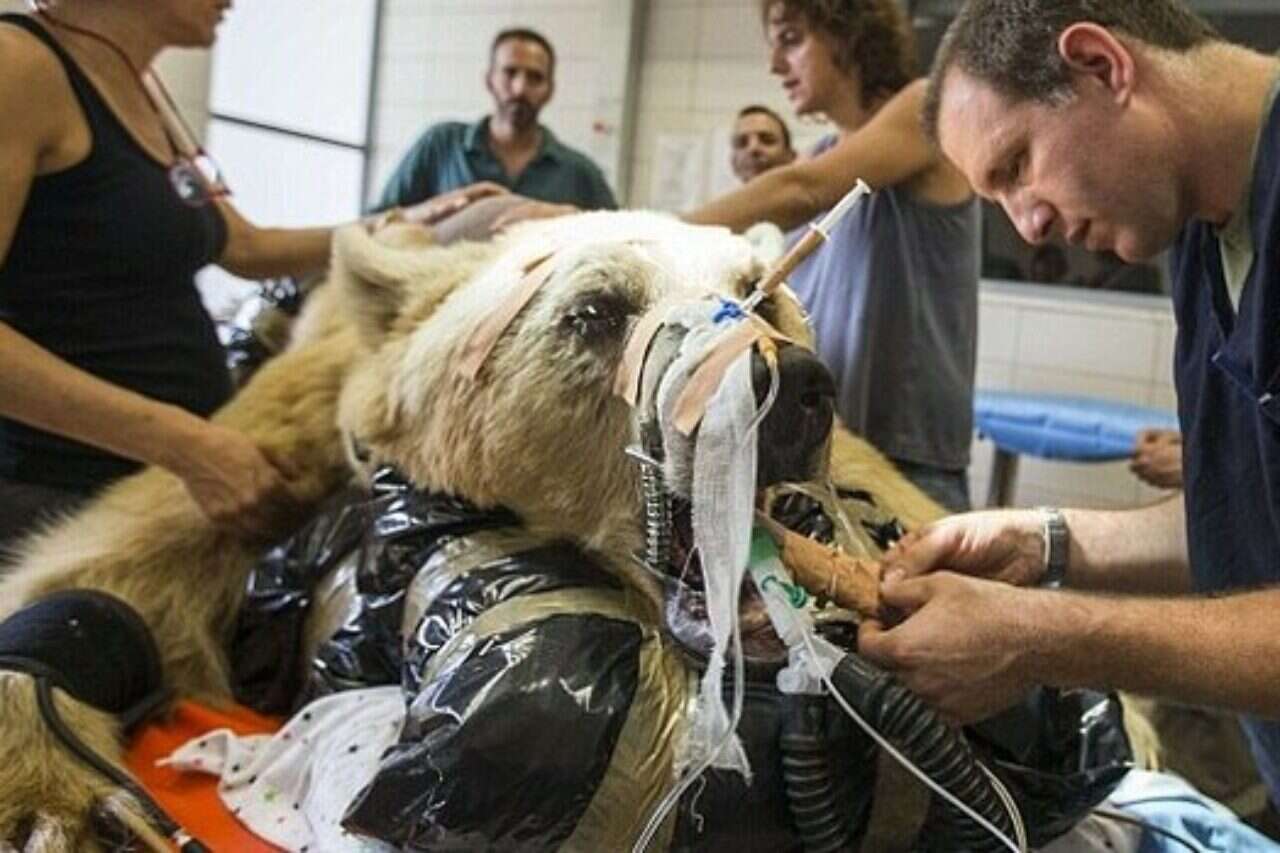 הזואולוגים הבחינו לראשונה בבעיה כשהתחיל הדוב, ששוקל כ-250 ק"ג, ללכת בצורה מוזרה. ד"ר מירב שמיר, שהובילה את הניתוח, אמרה: "הוא לא היה מסוגל להזיז את הגפיים האחוריות וזה התדרדר בהדרגה על פני 48 שעות הבאות עד שהפך למשותק לגמרי".