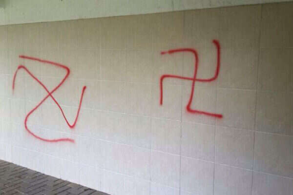 גל של פשעי שנאה: כתובות של צלבי קרס התגלו הערב ברחוב אד קוצ' ביפו. שני צלבי הקרס צויירו בספריי שחור על גבי קיר חיצוני בסמוך למבנה העירייה. שוטרי מרחב יפתח פתחו בחקירה, אך טרם נעצרו חשודים במעשה.
