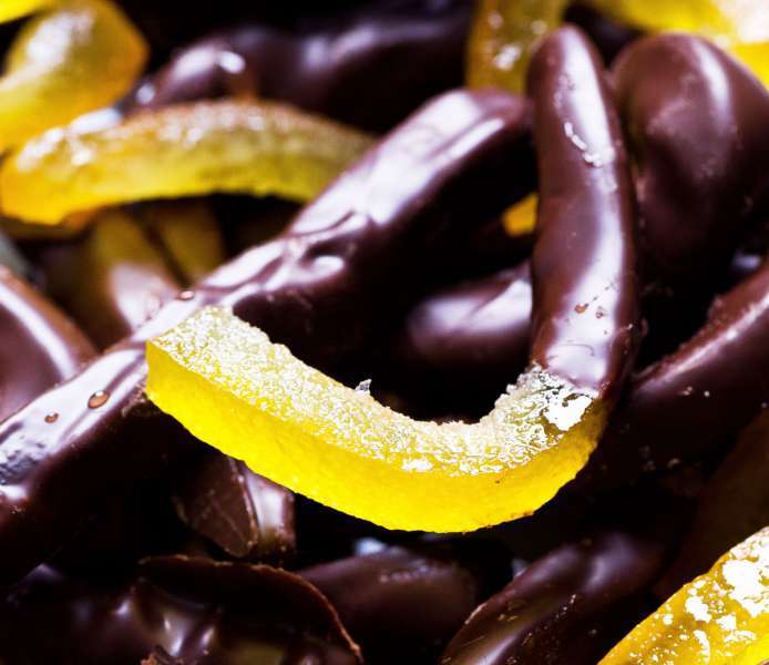 רצועות תפוזים או לימונים בציפוי שוקולד הן ממתק מאוד מבוקש אצלי בבית, ואני אוהב במיוחד את המרירות העדינה של התפוז המסוכר בשילוב שוקולד מריר איכותי. הממתק מאופיין בנגיסוּת נעימה של השוקולד וברכות של קליפת התפוז, ואני לפעמים מוותר על ציפוי הקינמון או הווניל ומצפה מייד בשוקולד.