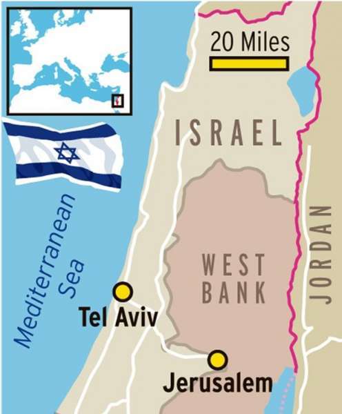 לכתבה נלווית מפה של מרכז מדינת ישראל, ובה מובלט החלק של הגדה המערבית, ותל אביב נראית מאוד קרובה לגבול. בצד המפה הגדולה יש גם מפה בקנה מידה קטן, שבו נראית ישראל בתוך ריבוע שחור, כפסיק קטן לחוף הים התיכון.