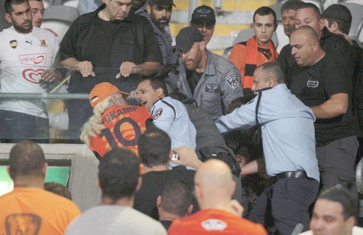 כאשר בן זוגה של העיתונאית ראה את חברתו נפגעת, הוא ניסה להפריד אך בעצמו ספג מכות מאוהדים אחרים. בשלב הזה אותם אוהדים שהתבצרו ביציע החלו לתקוף פיזית את המאבטחים ואת שוטרי היס"מ שעלו להפריד ביציע.