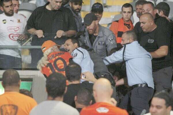 כאשר בן זוגה של העיתונאית ראה את חברתו נפגעת, הוא ניסה להפריד אך בעצמו ספג מכות מאוהדים אחרים. בשלב הזה אותם אוהדים שהתבצרו ביציע החלו לתקוף פיזית את המאבטחים ואת שוטרי היס"מ שעלו להפריד ביציע.