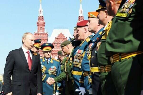 בתום המצעד הצבאי שנערך בעיר הנמל סבסטופול, שבמסגרתו נערך מטס של 70 כלי טיס, אמר פוטין כי "אני משוכנע כי השנה תירשם בהיסטוריה של ארצנו כשנה שבה הלאומים החליטו להתאחד ואישררו את הנאמנות שלהם לאמת ההיסטורית של אבותינו. אנחנו נתגבר על הקשיים משום שאנחנו מאוחדים וחזקים יותר".