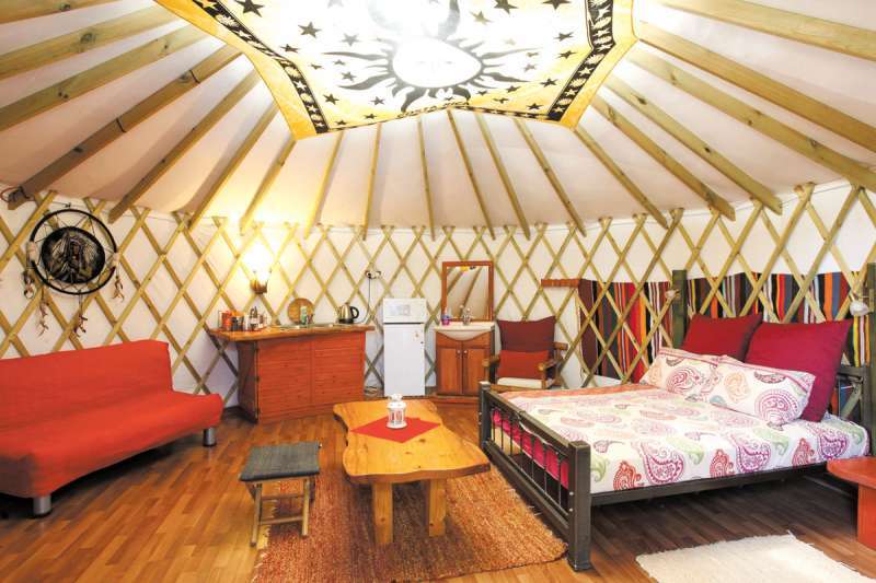 ואם עד עכשיו הכרתם רק אוהלי איגלו מתקפלים או אוהל משפחתי בהקמה עצמית, זה הזמן להכיר שמות חדשים ומוזרים של אוהלים: אוהלי טיפי (שנראים כמו חרוט הפוך), אוהל קזחי וכן יורטה, המתאימה ללינה של זוג בלבד. כך, למשל, תמצאו בכפר האינדיאני באבני איתן שבדרום רמת הגולן את שלושת הסוגים האלה, ולצידם סככות צל, פינות מנגל ומדורה, ומטבחון עם מקרר ומקפיא.