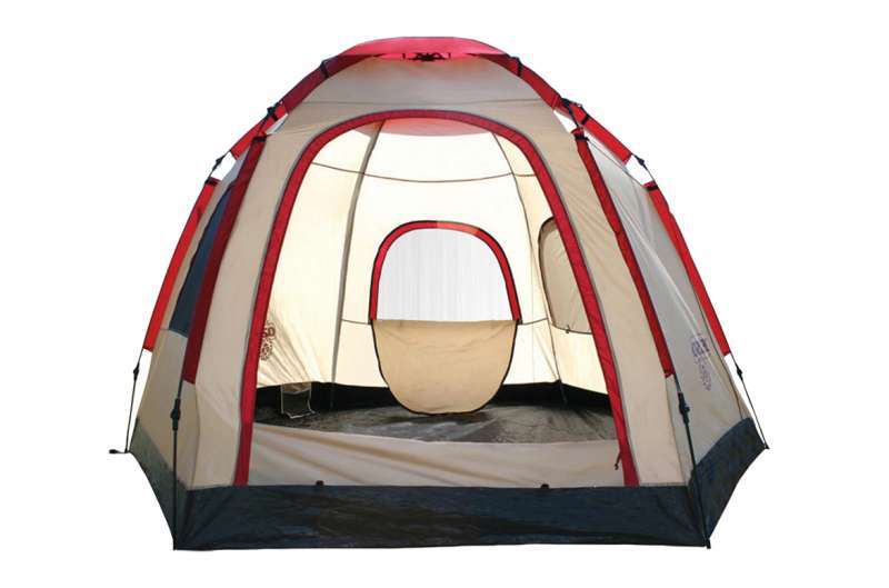 אוהל קולמן דגם סנדום ל־6 אנשים. עמיד בתנאי אקלים קיצוניים. להשיג ברשת ריקושט. מחיר: 1,099 שקלים