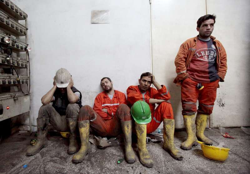 חלק מהכורים שחולצו ממתינים לחבריהם // צילום: GettyImages