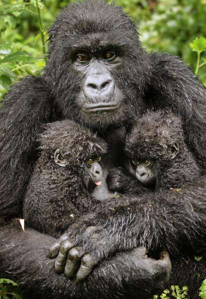 תאומי גורילה נולדים לעיתים נדירות, וזו הפעם החמישית בלבד שאירוע כזה דווח בפארק הלאומי וולקנוס שברואנדה. עתידם של השניים שבתמונה אינו בטוח. היערות שצמחו באזור השפלה המקיף את השמורה נכרתו, וכיום חיה באזור אוכלוסיית בני האדם הצפופה ביותר באפריקה, מה שגורם ללחץ על הגורילות שנותרו, המבודדות ביערות הגשם ההרריים.