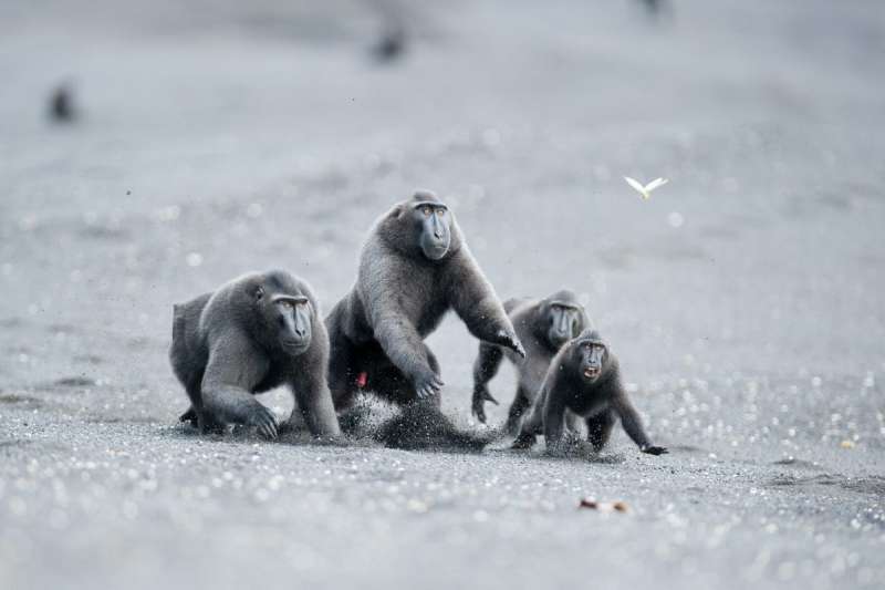 לא היה זה הצרצר המעופף, שאחריו רדפו קופי המקוק השחור, אלא מקוק זכר גדול ודומיננטי, שאינו נראה בתמונה. אנדרו וולמסלי התמקם על החוף בתקווה לצלם את התנהגותם של קופים אלה, ומזלו שיחק לו באותו היום. "המקוק הדומיננטי עמד על שלו - הוא צעד שלושה צעדים קדימה, והתעוזה של חברי הקבוצה התפוגגה. שנייה אחרי שהתמונה צולמה, המורדים קיפלו זנב וברחו".