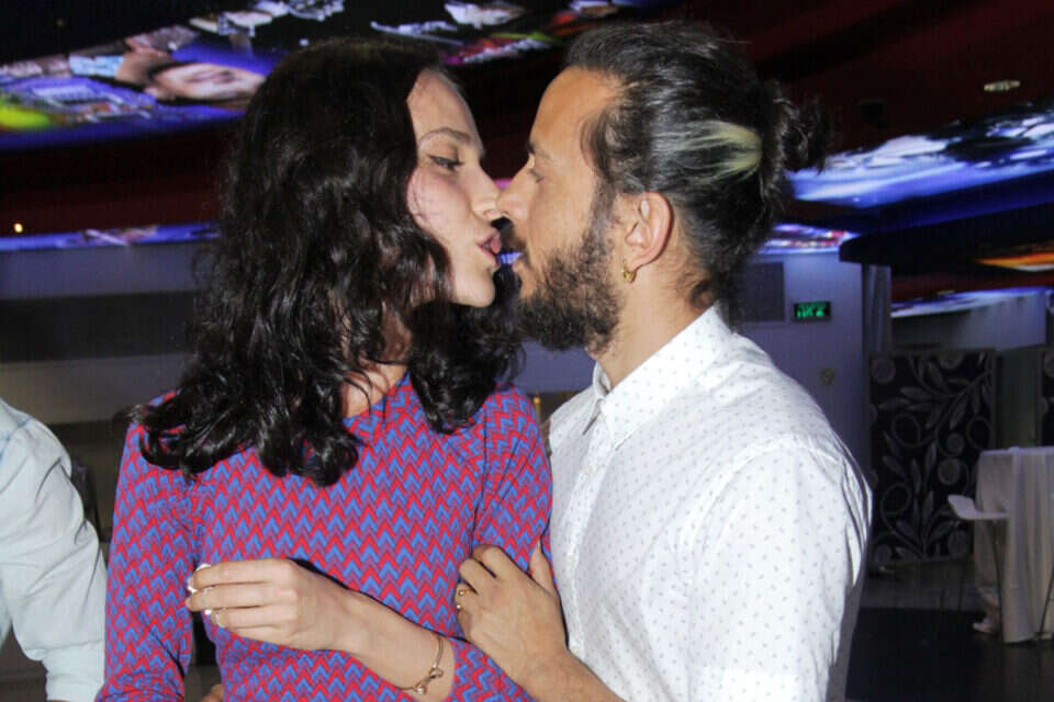 ציון ברוך הגיע לפרמיירה של "אחת אפס אפס" ומייד דאג לארגן לחברתו יאנה יוסף פופקורן. היא פינקה אותו בנשיקה.