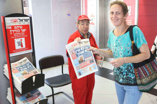 חלוקת "ישראל היום" בתחנת הרכבת חולון־וולפסון // צילום: יהושע יוסף // חלוקת "ישראל היום" בתחנת הרכבת חולון־וולפסון