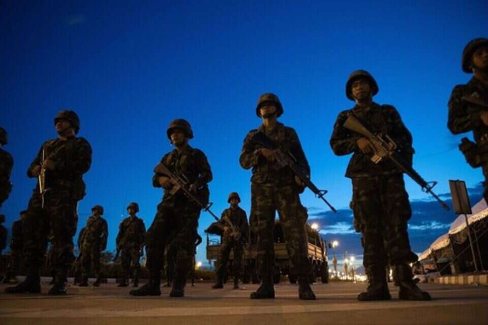 תאילנד נכנסה כעת באופן רשמי למשמעת צבאית. החיילים הוציאו היום כוחות נוספים לנקודות מרכזיות בבירה. כיכר הדמוקרטיה נסגרה לפנות ערב לתנועה, ושורה של חיילים הוצבה במקום. החיילים עדיין שמרו על נינוחות אבל להבדיל מהימים הקודמים, הפעם הם לא נפרדו מהקסדות.