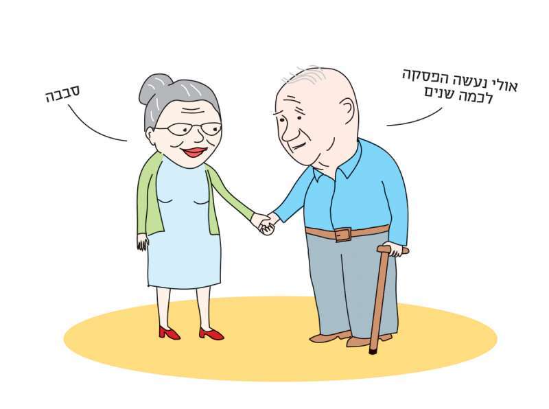 בחזרה למסיבה. ישבתי על כיסא גבוה והחזקתי לאשתי את היד חזק, עד שנהייתה כחולה. אני יודע שאני לא מציאה גדולה, ופחדתי שיבואו לה רעיונות בעקבות אווירת ה"אני לא מתפשרת" הכללית. מצד שני, חשבתי שאם מבטיחים לי לחיות עד גיל מאה, יש מצב שבאזור השבעים אציע לה שניקח הפסקה לכמה שנים כדי לבדוק יחסינו לאן. בדמיוני ראיתי כבר איך אני מבשר לה את הבשורה הקשה, אבל היא לא עונה לי. לא כי זה לא נראה לה, אלא כי היא פשוט כבר לא שומעת כלום.