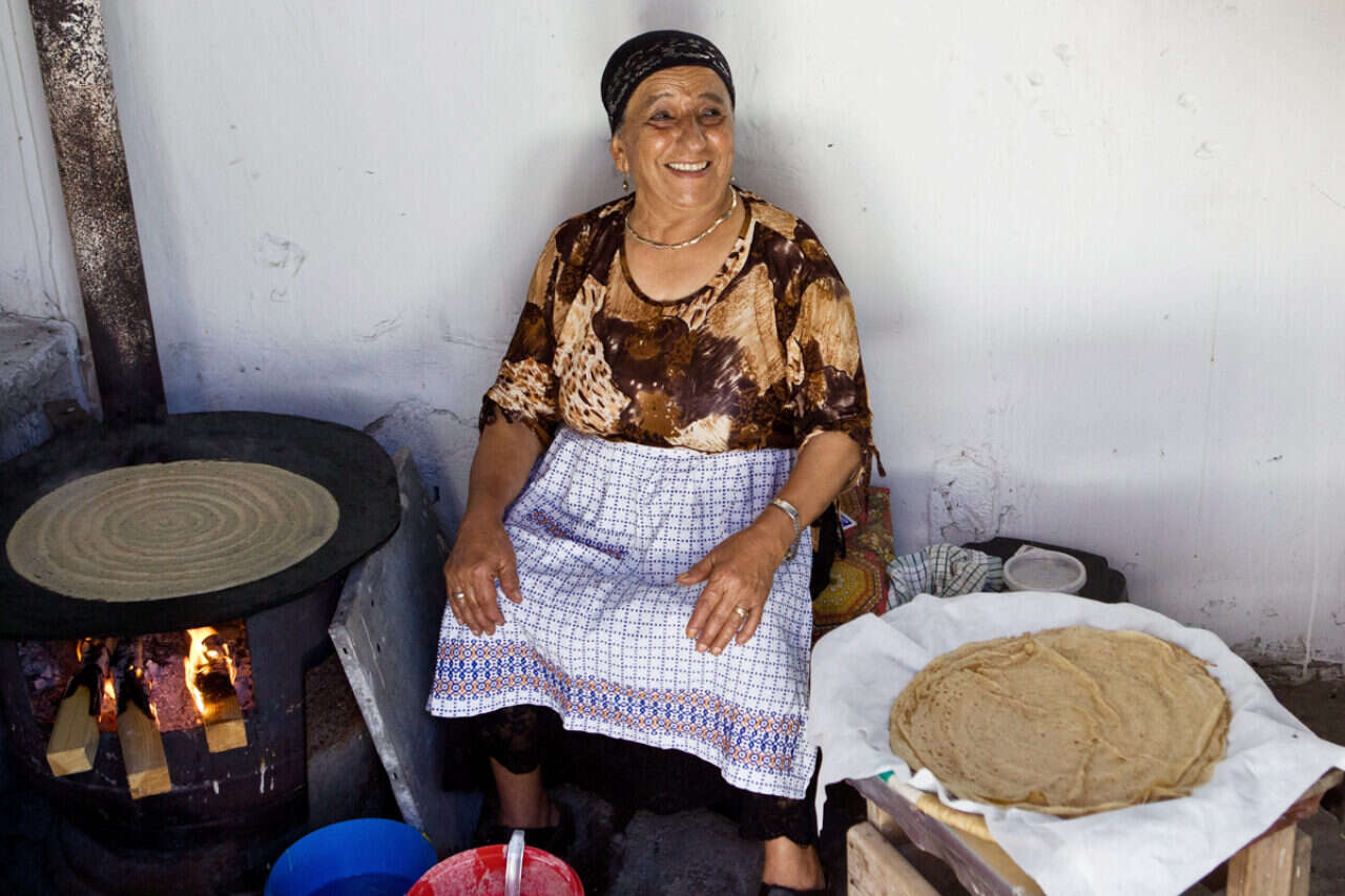 "34 שנים הוא בגן עדן ואני פה, ליד אש הגיהינום", אומרת תמר הלל וצוחקת. ממלאת עוד מצקת בראיי, בלילת המחמצת ללֶחָח, ככה החבאנים קוראים ללחוח שלהם. בתנועה היודעת היטב את דרכה היא יוצרת עלה עגול ודק על כיפת הברזל הלוהטת, זו המונחת מעל האש המִסחן, ככה קוראים לתנור העצים הקטן הזה. "הלך אבל השאיר לי מתנה גדולה. שישה ילדים. וגם אם הייתי רוצה למצוא גבר אחר הגוף שלי לא היה נותן לי. אצלנו אומרים כשהסוס מת לא הולכים לחפש חמור".