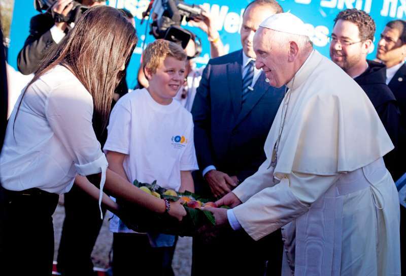 האפיפיור מקבל שי מילדים ישראלים בקבלת הפנים // צילום: ליאור מזרחי