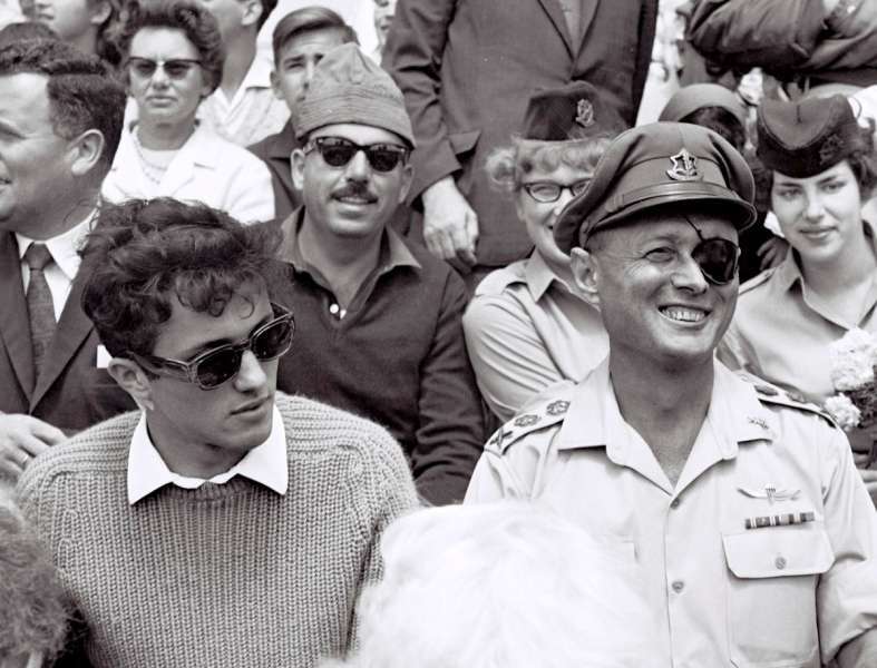 1965: צופה במצעד הצבאי עם אביו הרמטכ"ל משה דיין // צילום: פריץ כהן/לע"מ