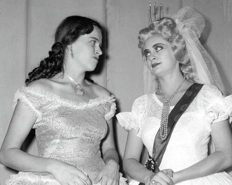 1949. מרון (מימין) על הבמה בתיאטרון הבימה, עם אורנה פורת // צילום: האנס פין, לע"מ